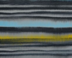 In terms of narrative, the viewer is invited to witness a blind painting session. Painting from the reverse side of the canvas, the paint is absorbed from one face and slowly released to the frontal surface. The artist shows us the creation of the painting by eliminating the fundamental act of painting. Thus, simultaneously, he also gives the viewer a chance to witness the resurrection of the image.