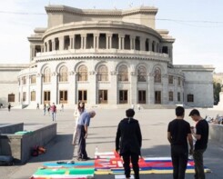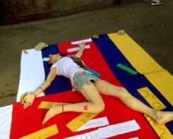 During her stay, she did several art performances and interactive site-specific interventions in the public space of Yerevan like ‘Freedom Square’ and throughout Armenia using coloured canvases, which were transformed from ‘image material’ into a connecting object.
