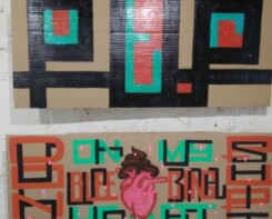 The mural and its original signboard are part of the artist’s “Political and Personal Protest Signs” series, which takes a playful formalistic approach to the contrasting forms of Latin and Armenian letters. His “protests” emphasize love (or its lack thereof), whether personal, societal, or governmental. The word “love” itself is a phonetic play on the Armenian term “լավ”, or “good”.