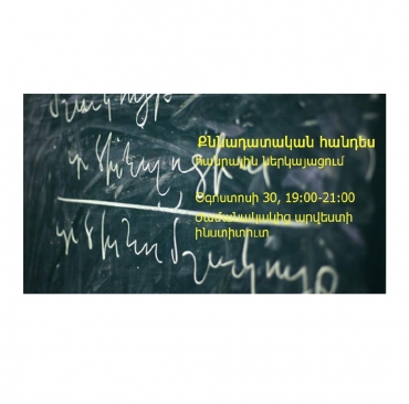 Research Laboratory is the research centre of the Institute for Contemporary Art. The studies carried out within this framework address the economic, legal, cultural-political, sociological, socio-psychological and other aspects of the Armenian and international context of contemporary art. These research projects examine individual spheres of art circulation (collecting, production, presentation and preservation, education and research) as well as the problems connected with interaction of involved individuals (artists, curators, critics, collectors, visitors, gallerists, etc.) and institutions (museums, art centers, exhibition halls, conferences and fairs). Identifying issues that arise in front of public and